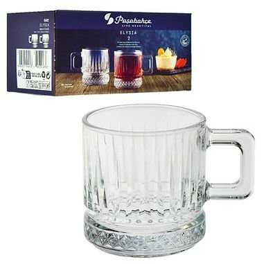 Pasabahce Elysia Σετ Ποτήρι Tσαγιού/Καφέ/Freddo με Χερούλι Γυάλινα Διάφανα 2τμχ